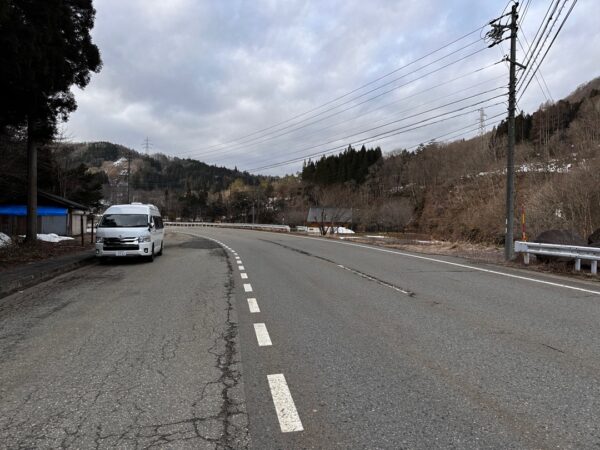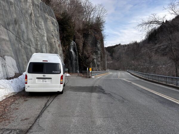 道の駅を出発してすぐのところにあります。道路脇に駐車スペースがあるので、そこに駐めました。