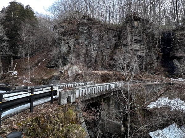 駐車場の前には歴史を感じさせる橋がかかっていました。倒壊の危険性があるのだろうと思います。渡れなくなっていました。