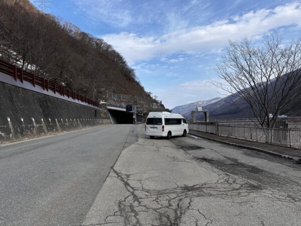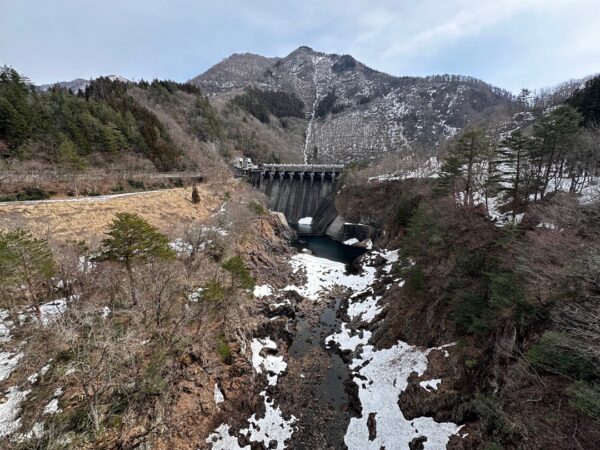 このあたりにはダムがたくさんあるのですが、駐車場がなかったり、路肩に駐めても見えなかったりと残念なところが多いです。ここは、路肩に駐めて観に行くことが出来ました。