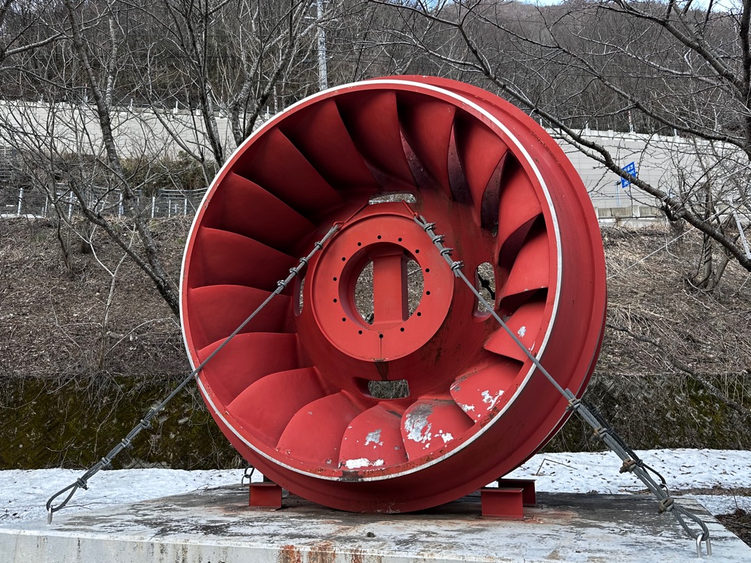 発電のための水車だと思いますが、説明板にも覆いがしてありわかりませんでした。