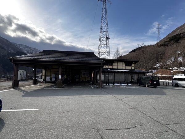 道の駅の売店は、12/1〜3/31まで休館となっていました。トイレは左側で、小6 大3の中規模のトイレでした。