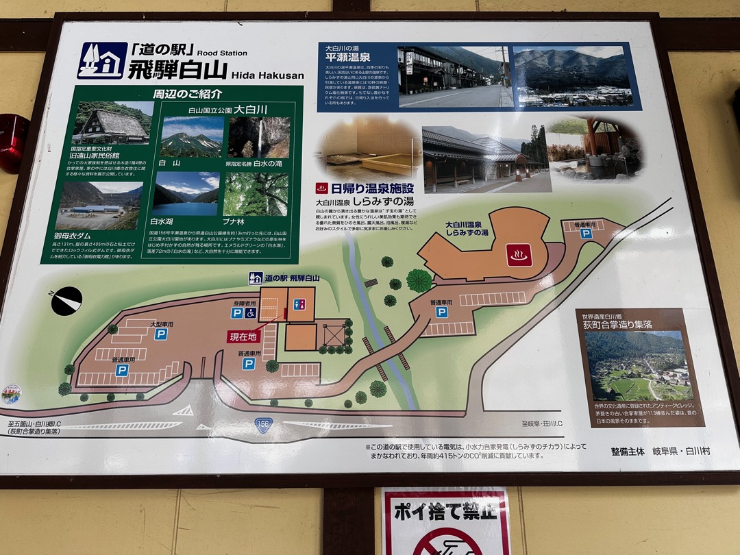 このあたりの道の駅はお惣菜を売っていないようです。ここもありませんでした。以前、この中のレストランで飛騨牛の牛丼を食べたことがあります。1,300円でしたが、今日は2,000円になっていました。食べたかったのですが、お昼にはまだ早かったので食べませんでした。
