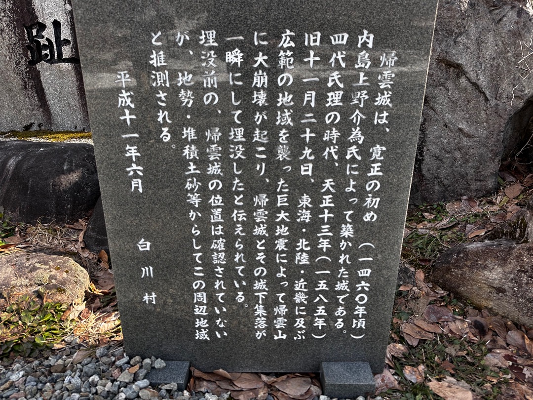 駒ヶ滝、夫婦滝、滝ヶ野の滝、ジュラ紀の化石群地、七間飛吊橋、御母衣ダム、帰雲城趾、帰り雲神社、成出ダム、相倉合掌造り集落、大鋸屋展望所