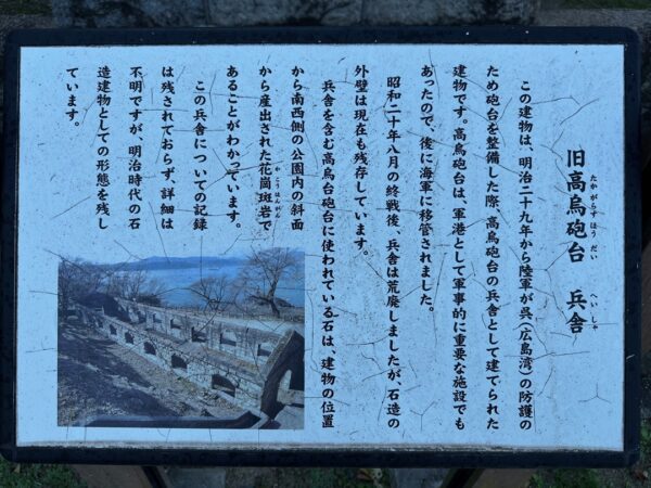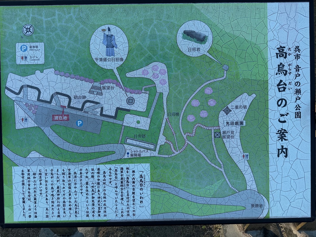 ここにある公園の案内図を観ていたら、上の方に砲台跡などがある展望台があることに気づきました。まずは、そこから行ってみることにしました。
