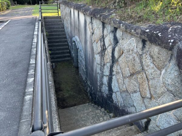 この階段は降りることが出来ないようになっていました。階段下の入口も上から覗いたところ塞いであるようでした。