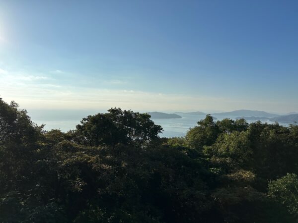 場所を変わって四国側を観ましたが、木が生い茂っていてほとんど見えません。