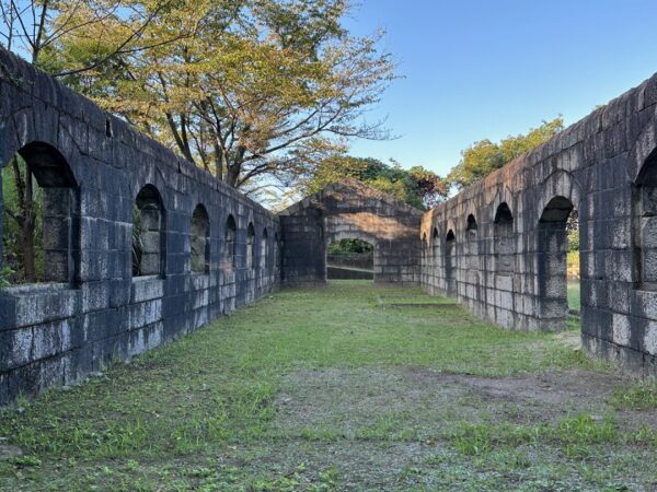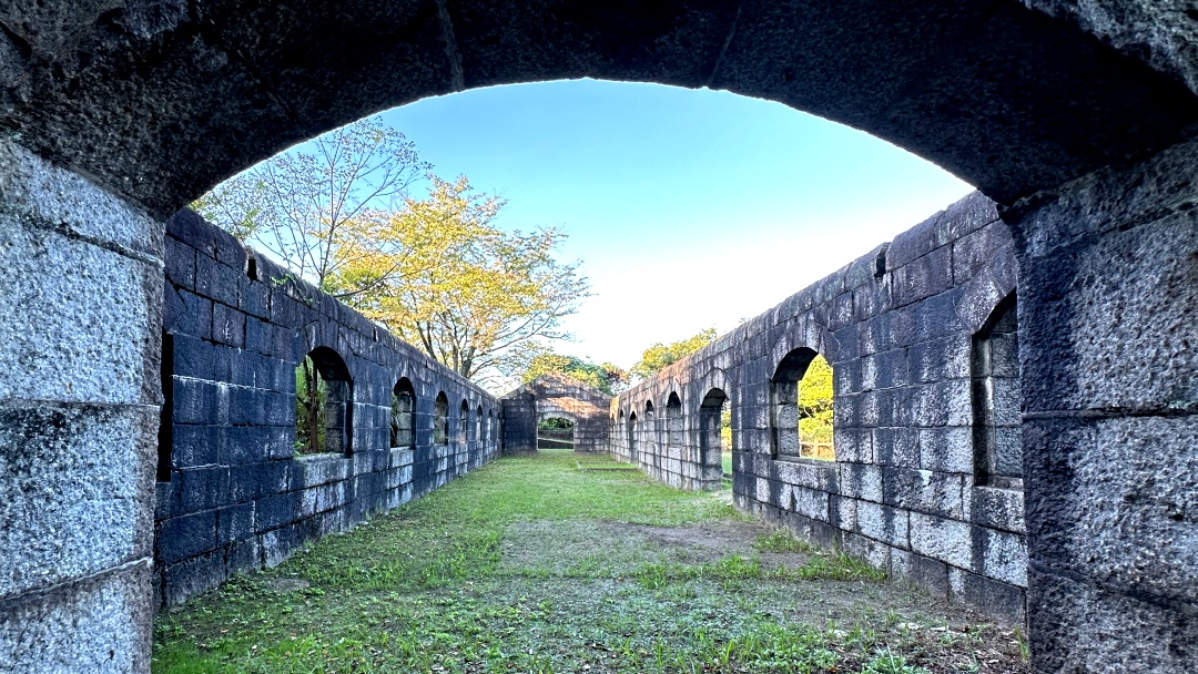 兵舎跡へ移動する途中、砲台跡の一部と思われる入口がありました。