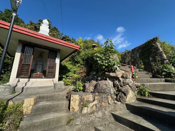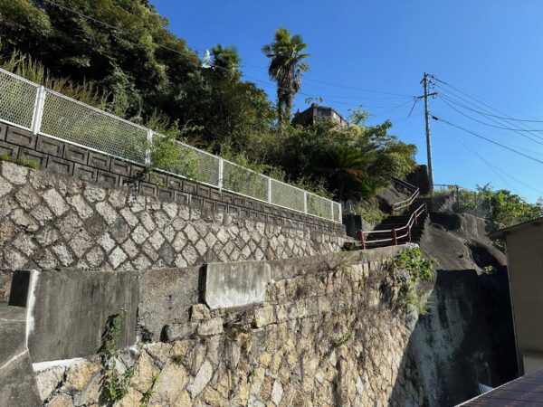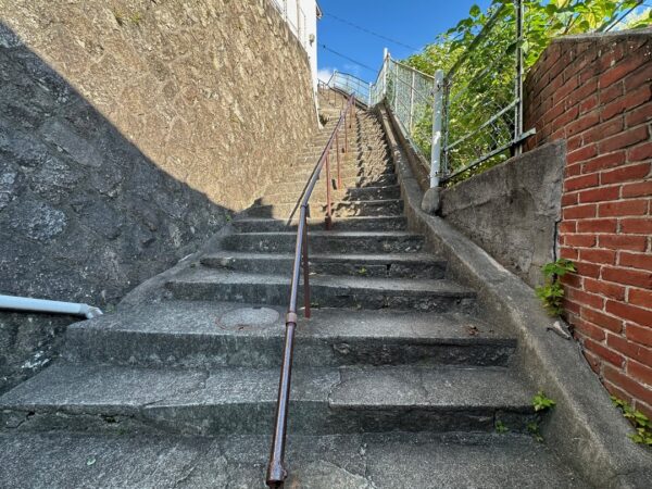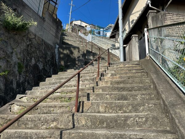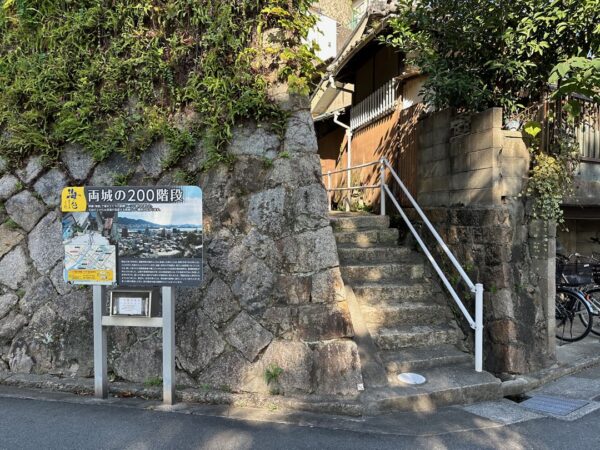 ここが両城の200階段の入口です。実際には、もう少し上ったところからが200階段のスタート地点になるのだそうです。この階段脇にお住まいの方から教えていただきました。