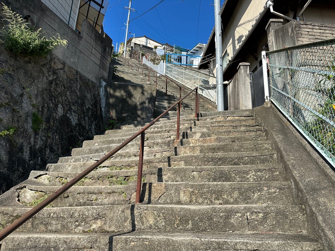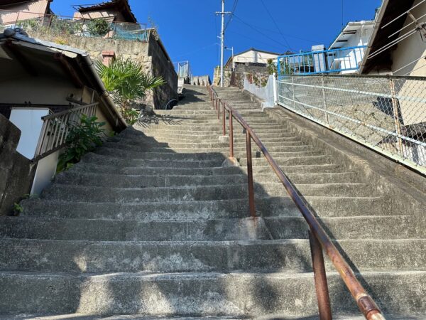呉の町外れにある急な斜面にたくさんの家が建っていて、その中を貫くように一本の石段が造ってあります。それを観に行くことにしました。