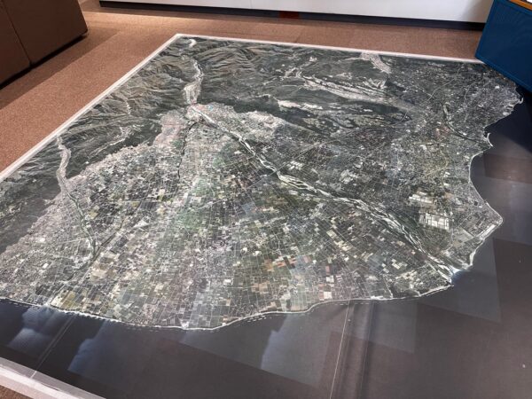 ここ黒部は黒部峡谷から流れてきた川が作る扇状地です。この付け根に相当する部分にある橋が愛本橋で、流れが早く橋脚を立てられないことから、橋脚のない刎橋(はねばし)が架けられました。その橋は、もう現存していないので観ることはできないのですが、ここの資料館で、360°の映像が楽しめるVRゴーグルを使って約7分間の映像を拝見しました。刎橋としては、とても大きな橋で技術力の高さを感じる橋でした。あわせて、黒部峡谷を黒部ダムまで歩いて行く映像、約12分も拝見しました。実際には足がすくんで行けないようなところを歩いていく疑似体験が出来ました。