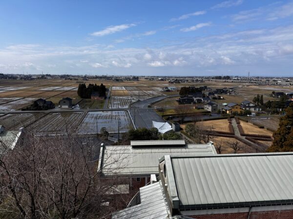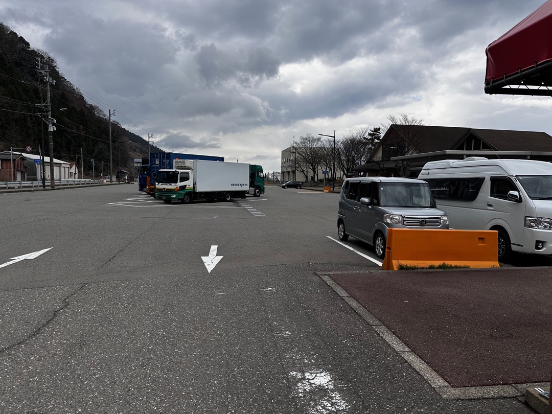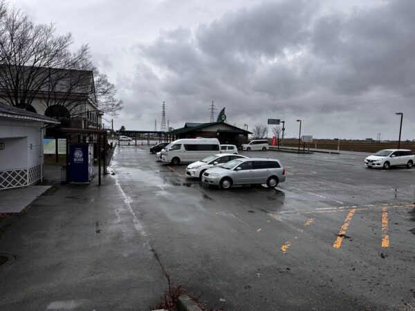 展望台の前の駐車場に車を駐めました。この写真の中央にあるお店でお昼をいただくために、ここに駐めたのですが、お店の駐車場はこの写真の右側にあるスペースだそうです。僕が駐めたところは違うとお店に書いてありました。