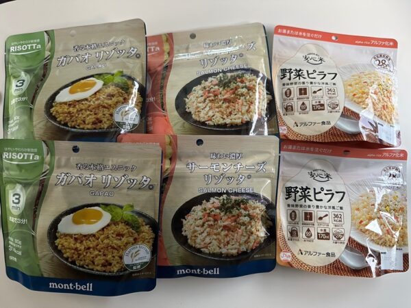 モンベルで、家にストックしている非常食に追加するために、これらを買いました。5年以上保存ができます。期限になったものから旅でいただくことにしています。
