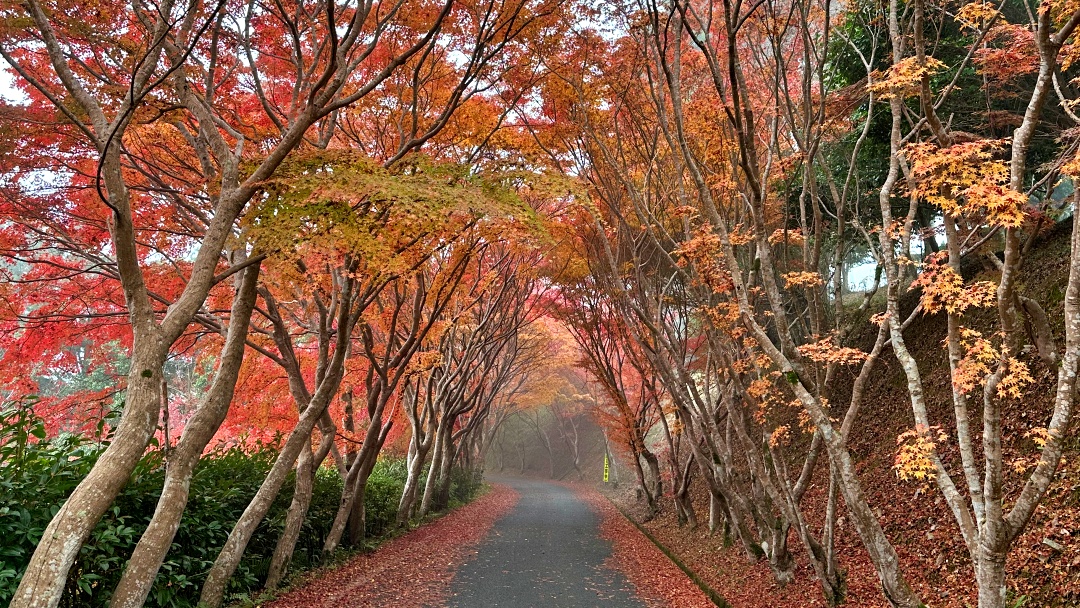 ありました。もみじのトンネルです。それにしても、助手はよく見つけたものだと思いました。Googleマップを細かく見て見つけたそうです。確かに僕らのあとにも、このトンネルを見に来られる方がいらっしゃいましたので、知る人ぞ知る名所なのだと思います。天気が良くて、タイミングがバッチリあったら、とてもすてきなところだと思います。要チェックですね。